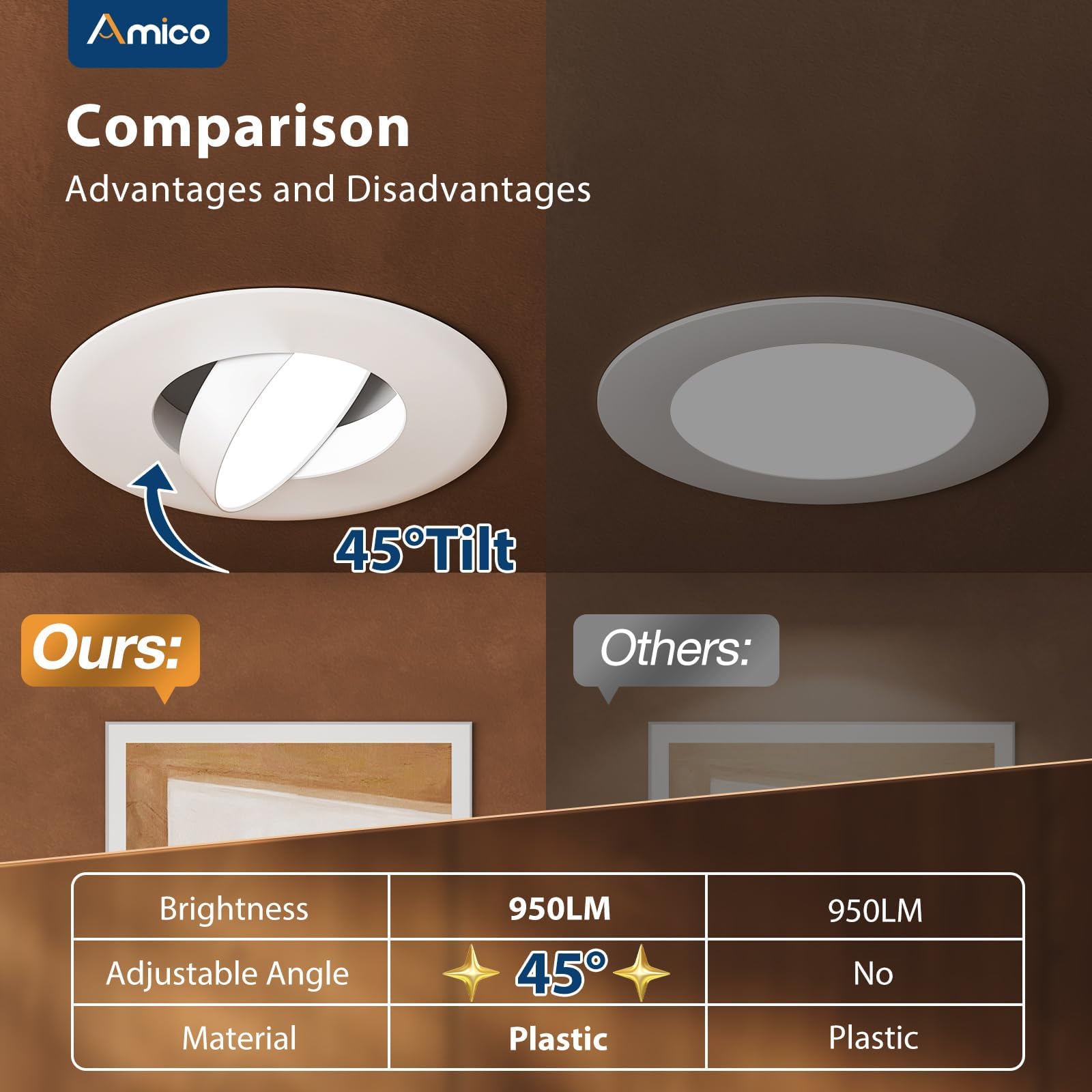 Amico 6 Pack 6 Inch Retrofit Eyeball Gimbal Can Lights, Adjustable Eyeball Directional 5CCT LED Recessed Lights, Dimmable, 2700K/3000K/3500K/4000K/5000K Selectable, 10W 950LM, ETL&FCC