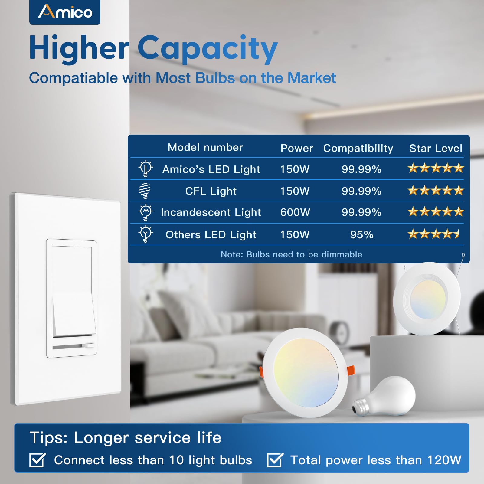 - Optimal Complement: Maximum compatibility with Amico recessed ceiling light, tested hundreds of times for flicker-free dimming.