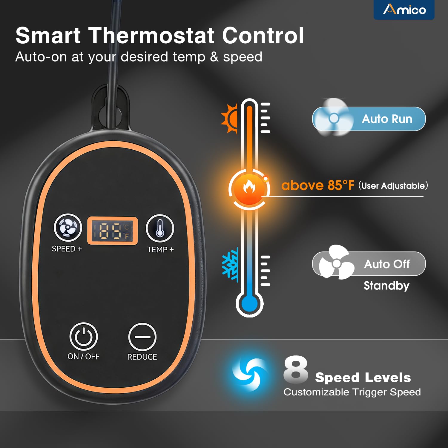 - 【Smart Thermostat & 8-Speed Control】Experience true "set it and forget it" convenience. Our attic fan with thermostat features an intelligent probe that triggers the fan to run automatically when your preset temperature is reached. With 8 adjustable speeds to customize airflow intensity and a built-in Power-Off Memory function, it automatically saves your preferred settings even after a power outage.
