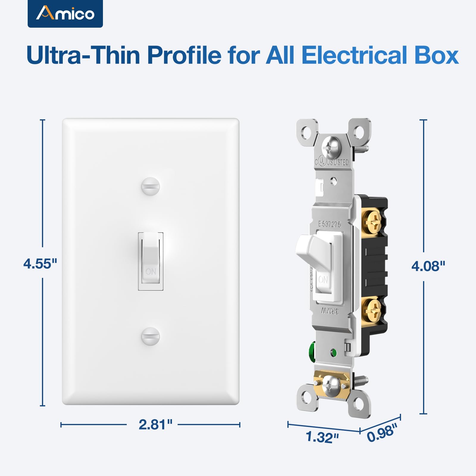 -14%Amico Toggle Light Switches, UL Listed, Single Pole Wall Switch for Light or Fan Control, On/Off Toggle Wall Switch Replacement, Residential Grade, for Home and Business, White, 30 Pack—